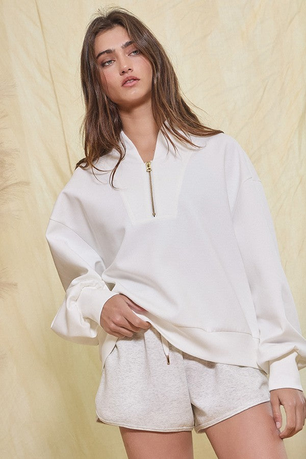 - High rise - Dolphin hem - Soft , stretch and cozy scuba fabric - Relaxed through hip and thigh