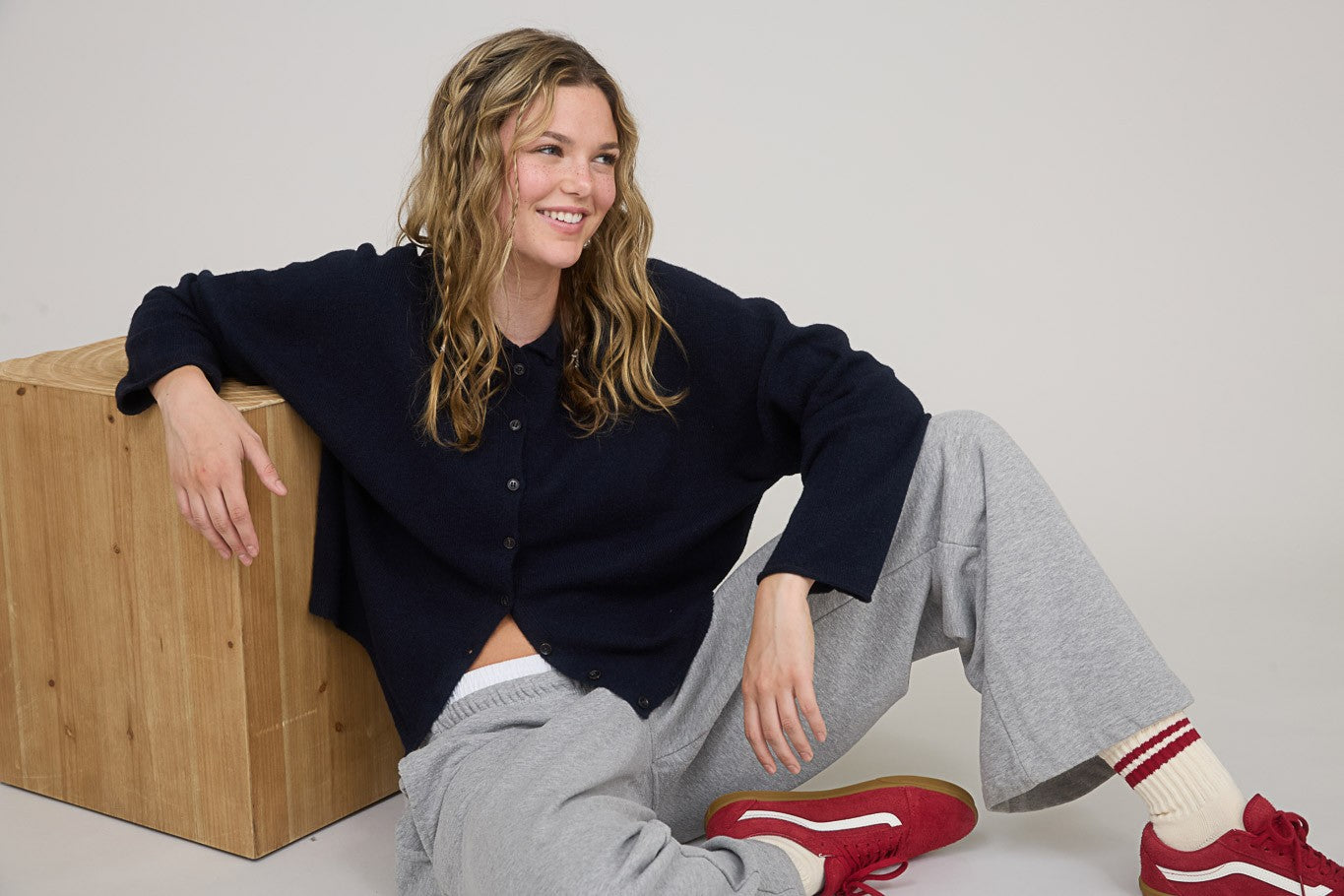 ROUND NECKLINE BUTTON DOWN LONG SLEEVES SEAMLESS DETAIL LIGHT WEIGHT KNIT CARDIGAN WOOL BLEND 65% RECYCLED POLYESTER 13% ACRYLIC 13% NYLON 6% WOOL 3% SPANDEX